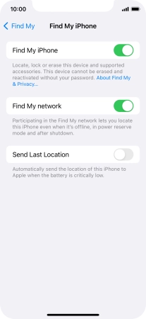 Select settings for Find My iPhone