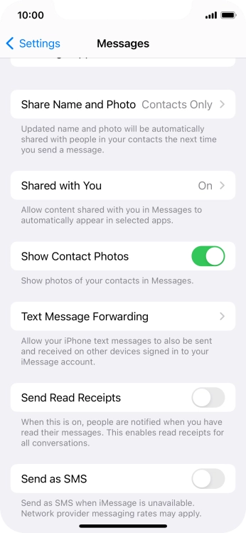 Press the indicator next to "Send as SMS" to turn the function on or off.