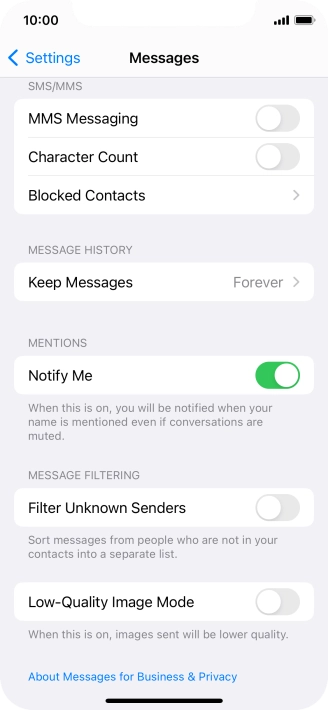 Press the indicator next to "MMS Messaging" to turn on the function.