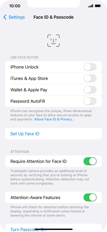 Press Face ID & Passcode.