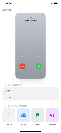 Press Name and follow the instructions on the screen to edit your name on the Contact Poster.