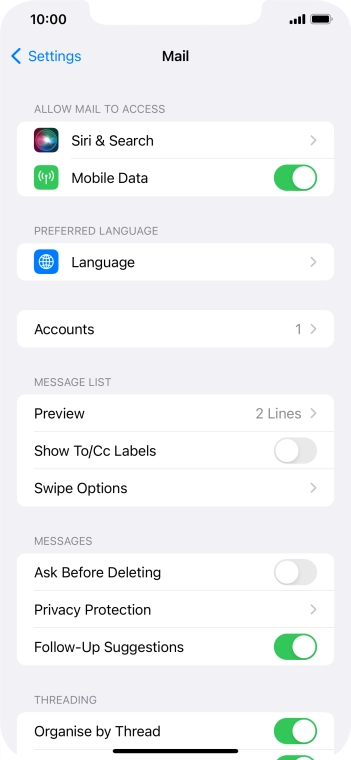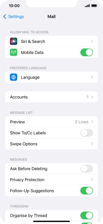 Press the required email account and follow the instructions on the screen to select settings for the specific account.