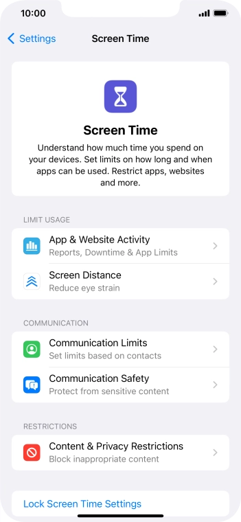 Press Screen Time and optionally select the required member of your family group.