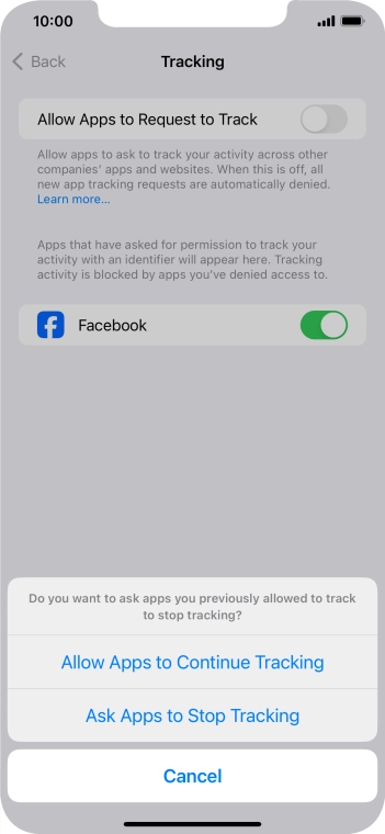 Press the indicator next to "Allow Apps to Request to Track" to turn the function on or off.