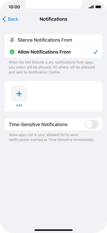 Press Apps and follow the instructions on the screen to select which apps you would like to receive notifications from when Do Not Disturb is turned on.