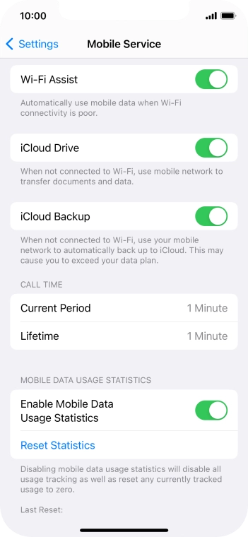 Press the indicator next to "Wi-Fi Assist" to turn the function on or off.