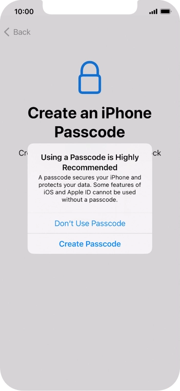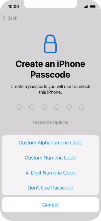 Follow the instructions on the screen to turn on use of phone lock code or press Don't Use Passcode.