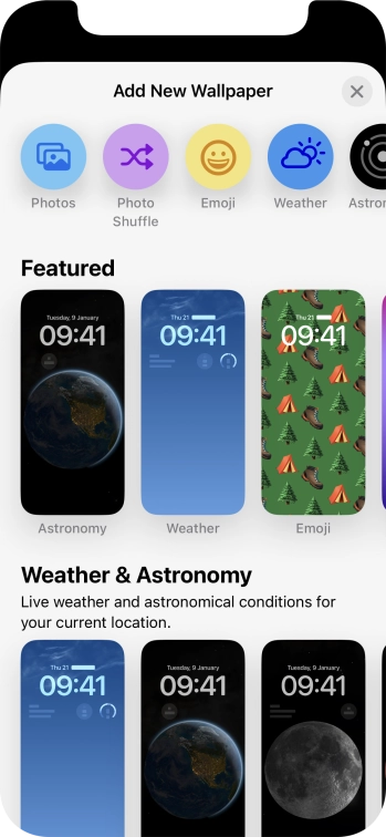 Press Customise and follow the instructions on the screen to customise the selected lock screen.