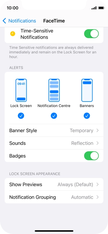 Press the indicator next to "Time-Sensitive Notifications" to turn the function on or off.
