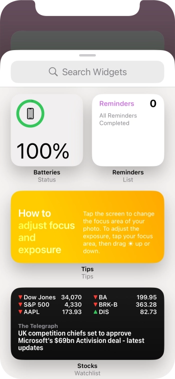 You can use widgets on your phone allowing you to get a quick overview of selected apps. You can choose between different widget sizes, organise widgets in stacks and place them on the home screen.