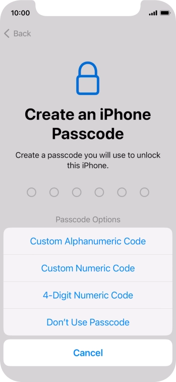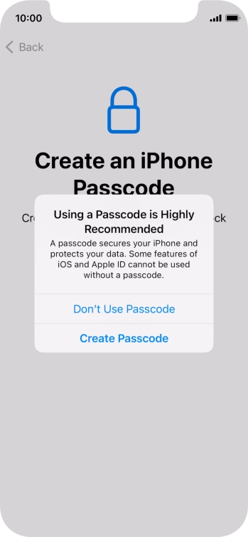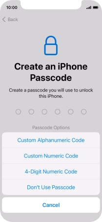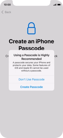Follow the instructions on the screen to turn on use of phone lock code or press Don't Use Passcode.