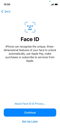 Follow the instructions on the screen to turn on use of Face ID or press Set Up Later.