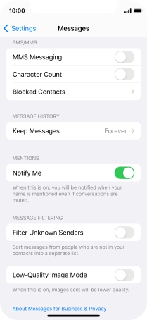 Press the indicator next to "MMS Messaging" to turn on the function.