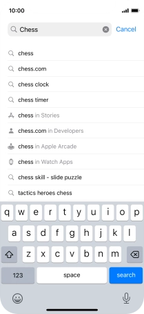 Press the search field and key in the name or subject of the required app.