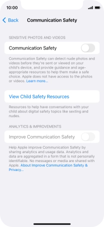Press the indicator next to "Communication Safety" to turn the function on or off.