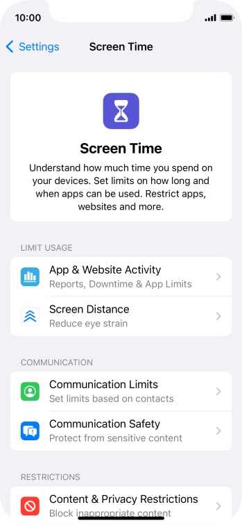 Press Screen Time and optionally select the required member of your family group.