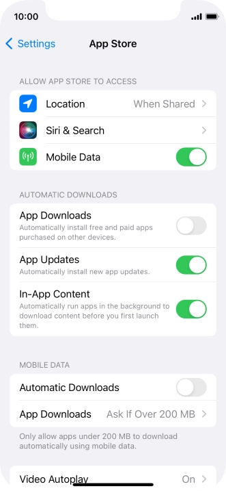 Press the indicator next to "App Downloads" to turn the function on or off.
