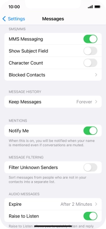 Press the indicator next to "MMS Messaging" to turn on the function.