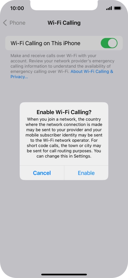 Press the indicator next to "Wi-Fi Calling on This iPhone" to turn the function on or off.