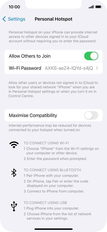 Find the list of available Wi-Fi networks and select the personal hotspot you've just set up.