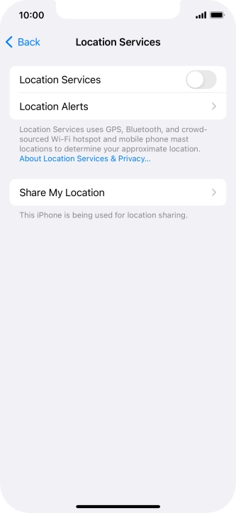 Press the indicator next to "Location Services" to turn the function on or off.