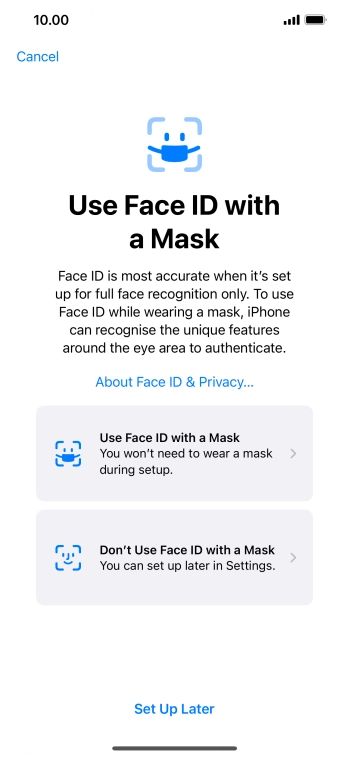 Press Set Up Face ID.