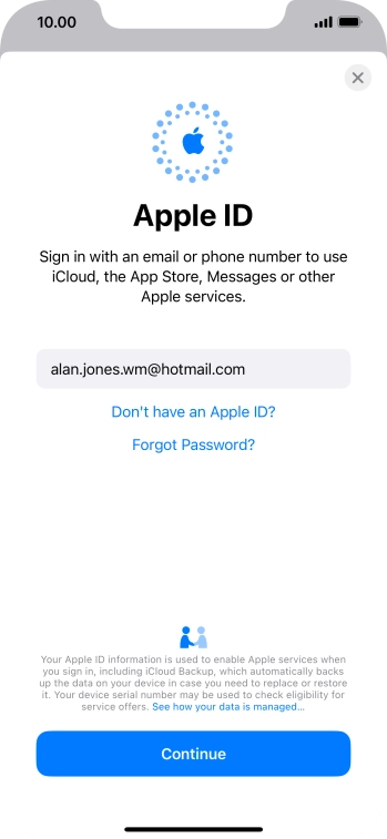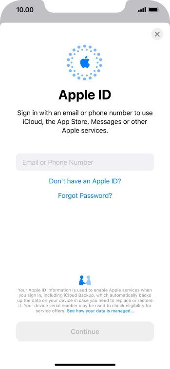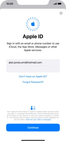 If you don t have an Apple ID, press Don't have an Apple ID? and follow the instructions on the screen to create an Apple ID.