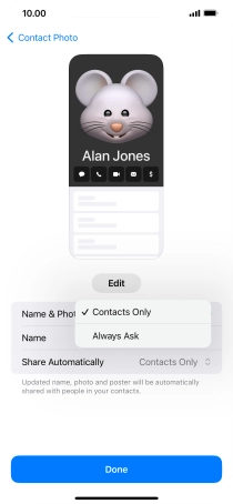 Press Name and follow the instructions on the screen to edit your name on the Contact Poster.