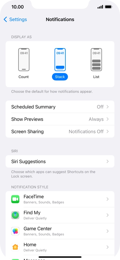 3 Select setting for notification preview