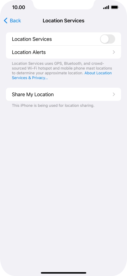 Press the indicator next to "Location Services" to turn the function on or off.