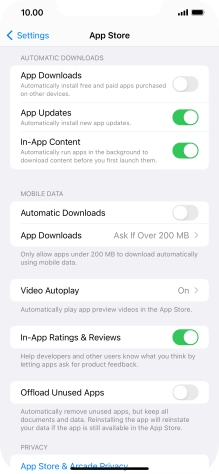 Press the indicator next to "Automatic Downloads" to turn the function on or off.