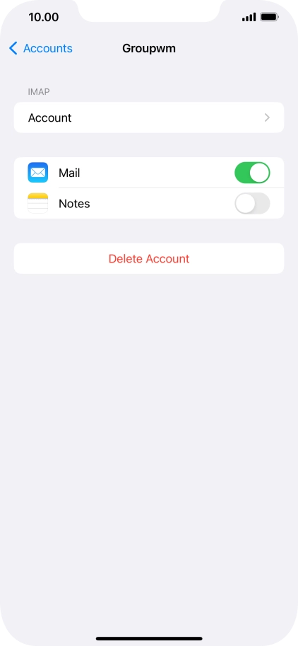 Press the name of the email account you've just set up.