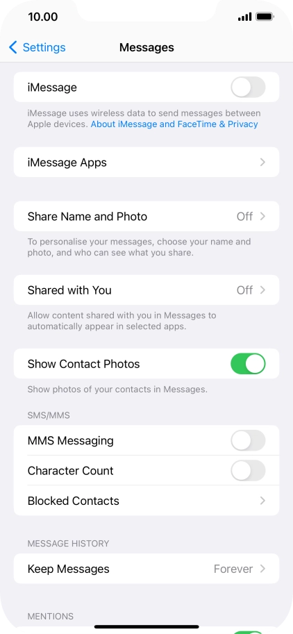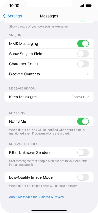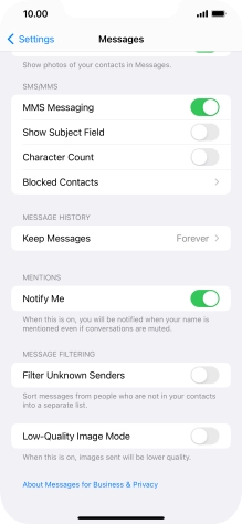 Press the indicator next to "MMS Messaging" to turn on the function.