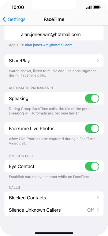 Select FaceTime settings