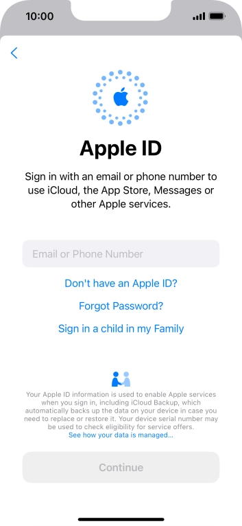 If you don t have an Apple ID, press Don't have an Apple ID? and follow the instructions on the screen to create an Apple ID.