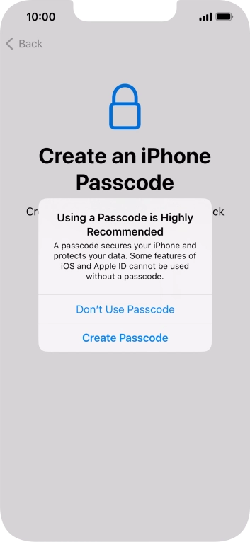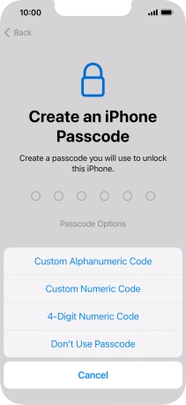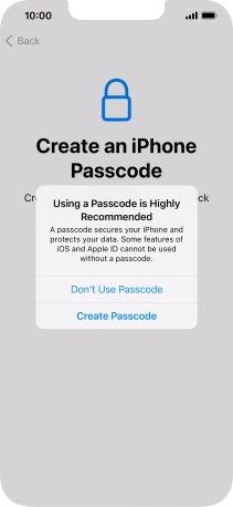 Follow the instructions on the screen to turn on use of phone lock code or press Don't Use Passcode.