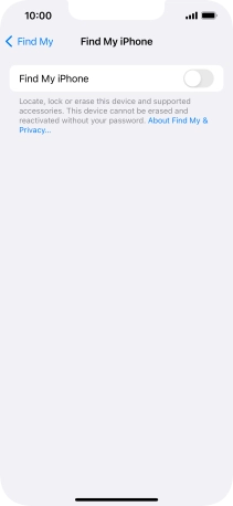 Press the indicator next to "Find My iPhone" to turn on the function.