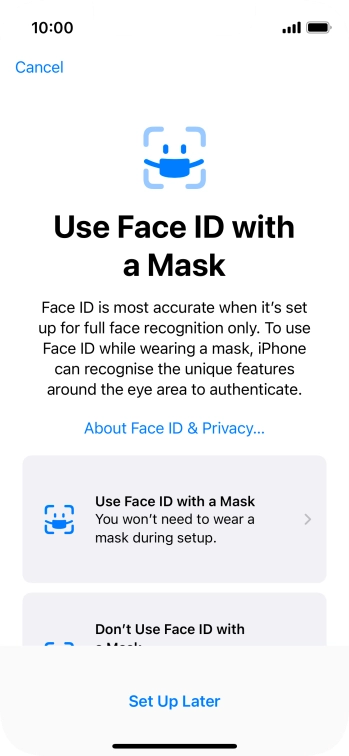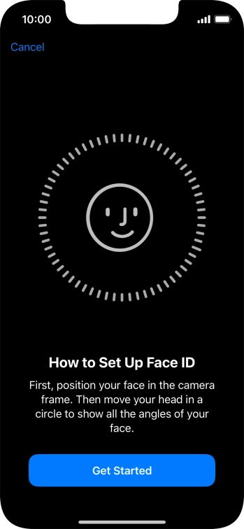 Press Get Started and follow the instructions on the screen to set up Face ID.