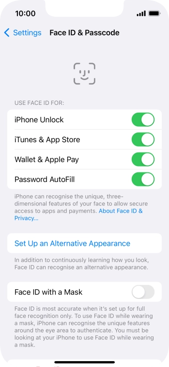 You can set your phone to use face recognition as phone lock code or to authorise iTunes and App Store purchases.