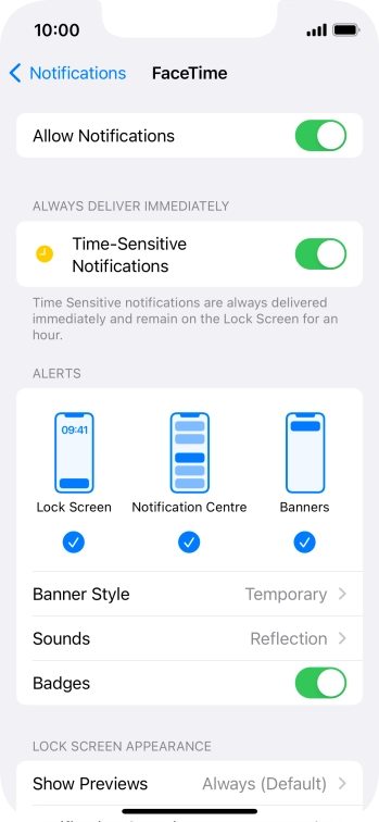 Press the indicator next to "Time-Sensitive Notifications" to turn the function on or off.
