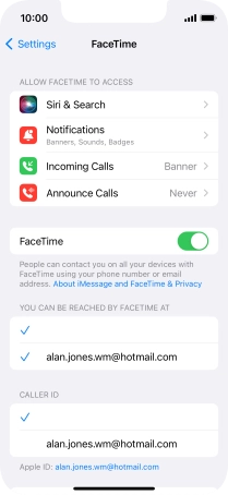 Press the required setting below "YOU CAN BE REACHED BY FACETIME AT".