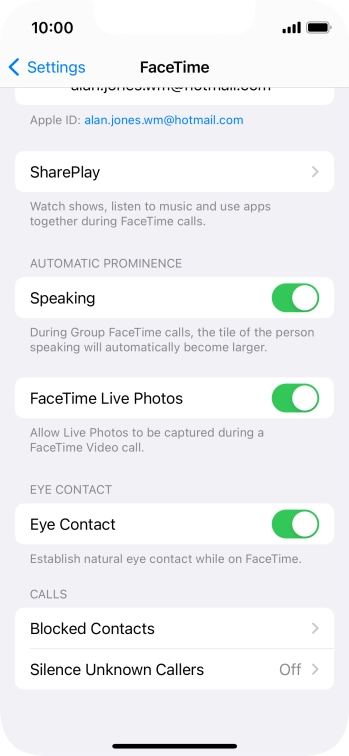 Select FaceTime settings