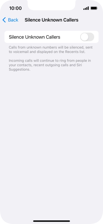 Press the indicator next to "Silence Unknown Callers" to turn the function on or off.