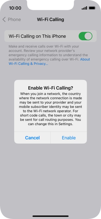 Press the indicator next to "Wi-Fi Calling on This iPhone" to turn the function on or off.