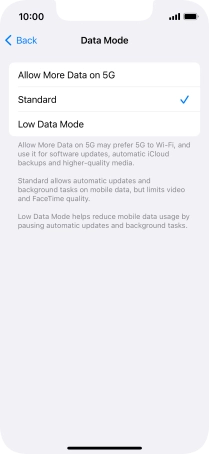 Select settings for data usage