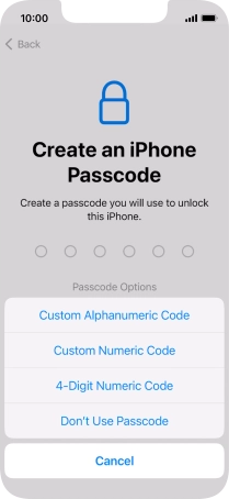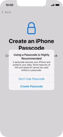 Follow the instructions on the screen to turn on use of phone lock code or press Don't Use Passcode.