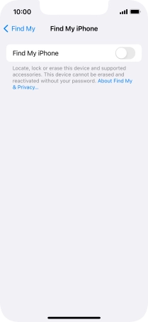 Press the indicator next to "Find My iPhone" to turn on the function.