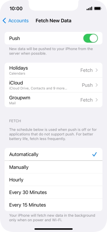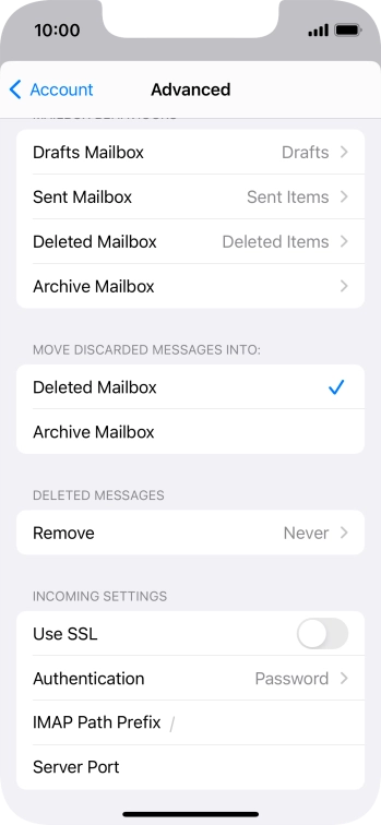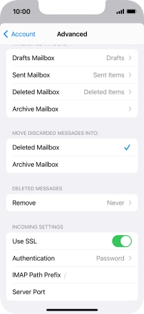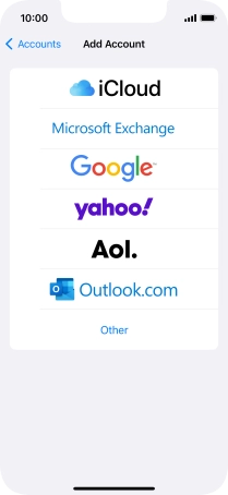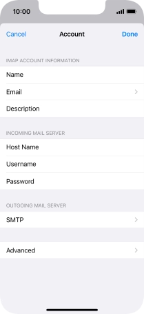 Press the required email account and follow the instructions on the screen to select settings for the specific account.