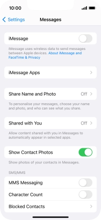 Press the indicator next to "Send as SMS" to turn the function on or off.