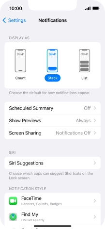 3 Select setting for notification preview